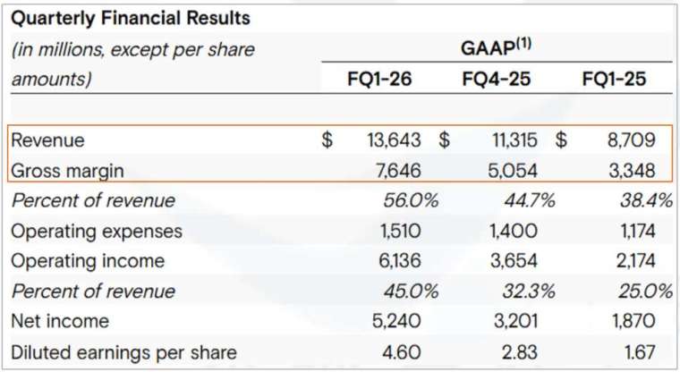 華爾街投行喊出這是美國半導體股史上最大財報驚喜。如此大的驚喜 (Beat%),營運結構是主因,相較於 NVIDIA、Broadcom 等,正是記憶體為報價循環標的,且正進入瘋狂的漲勢,因此法人也很難估算實際入帳的營收到底多少,報價為何? 再加上美光這類的記憶體廠商,營收成長與獲利並非線性關係,因此只要營收超出預期一點,利潤率就會加速成長,反之亦然