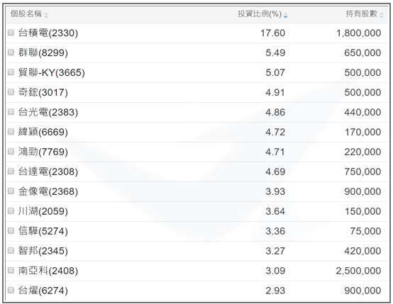 其截至 12/26 開盤前的持股如左圖所示,與 00980A、00981A 等主動式台股 ETF 的持股基本上高度重疊,買入最高比例的台積電作為基本持股,另外集中買入大量的 AI 伺服器零組件標的。